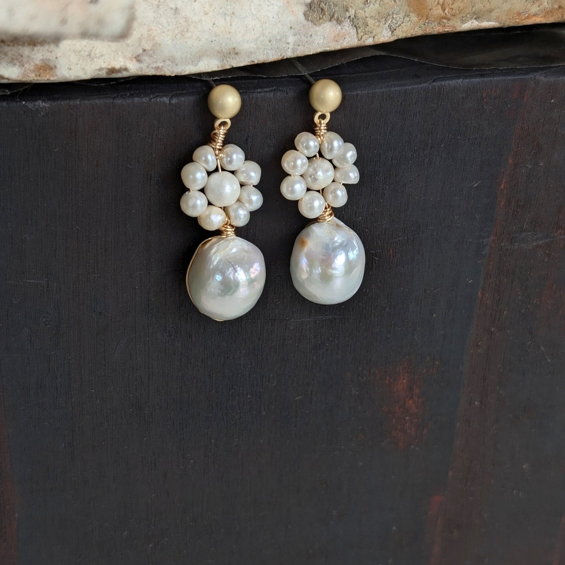 The Daisy pearl earrings are a charming blend of elegance and nature-inspired design. These contemporary earrings feature delicate freshwater pearls arranged to form a beautiful flower while the round baroque pearl creates the drop.