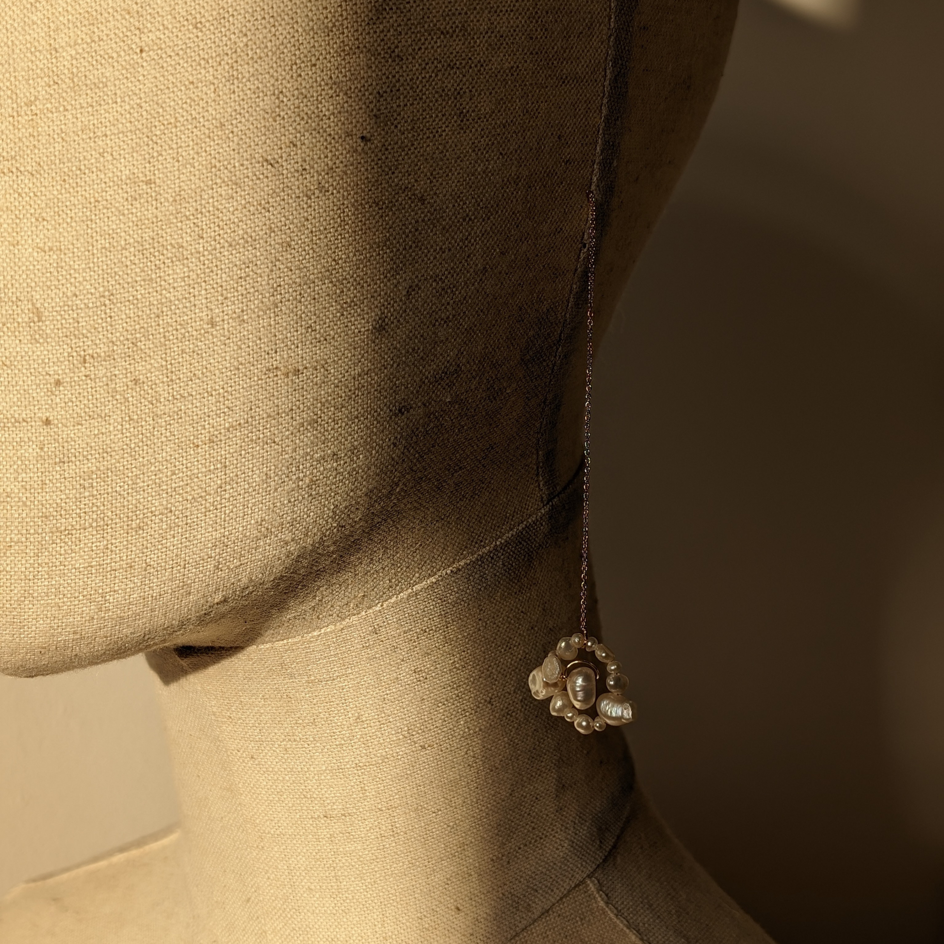 The fresh water pearls are carefully hand designed in a cluster arrangement, which gives them a unique and one-of-a-kind look. When suspended from an earring thread, they create a beautiful floated effect that is simply stunning.