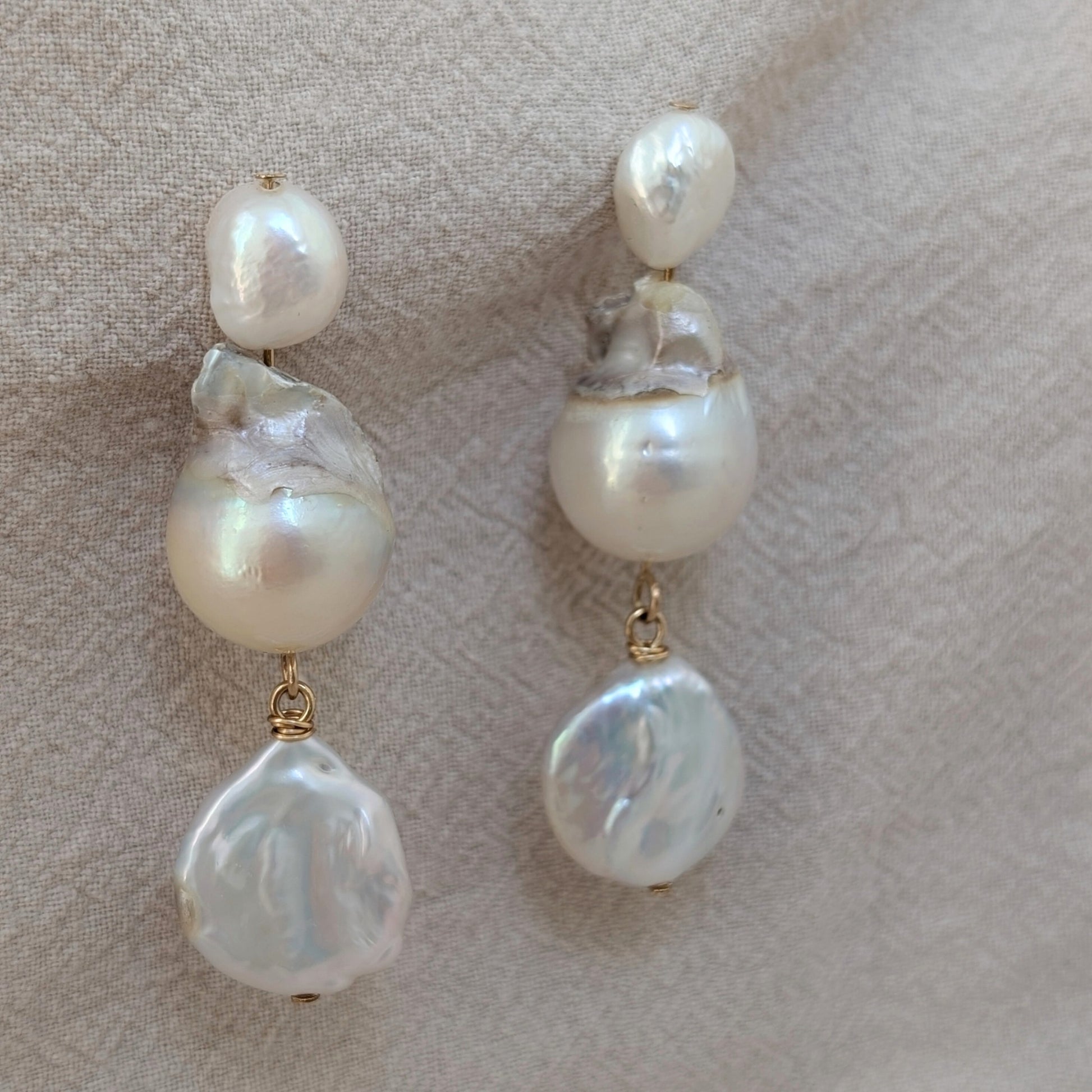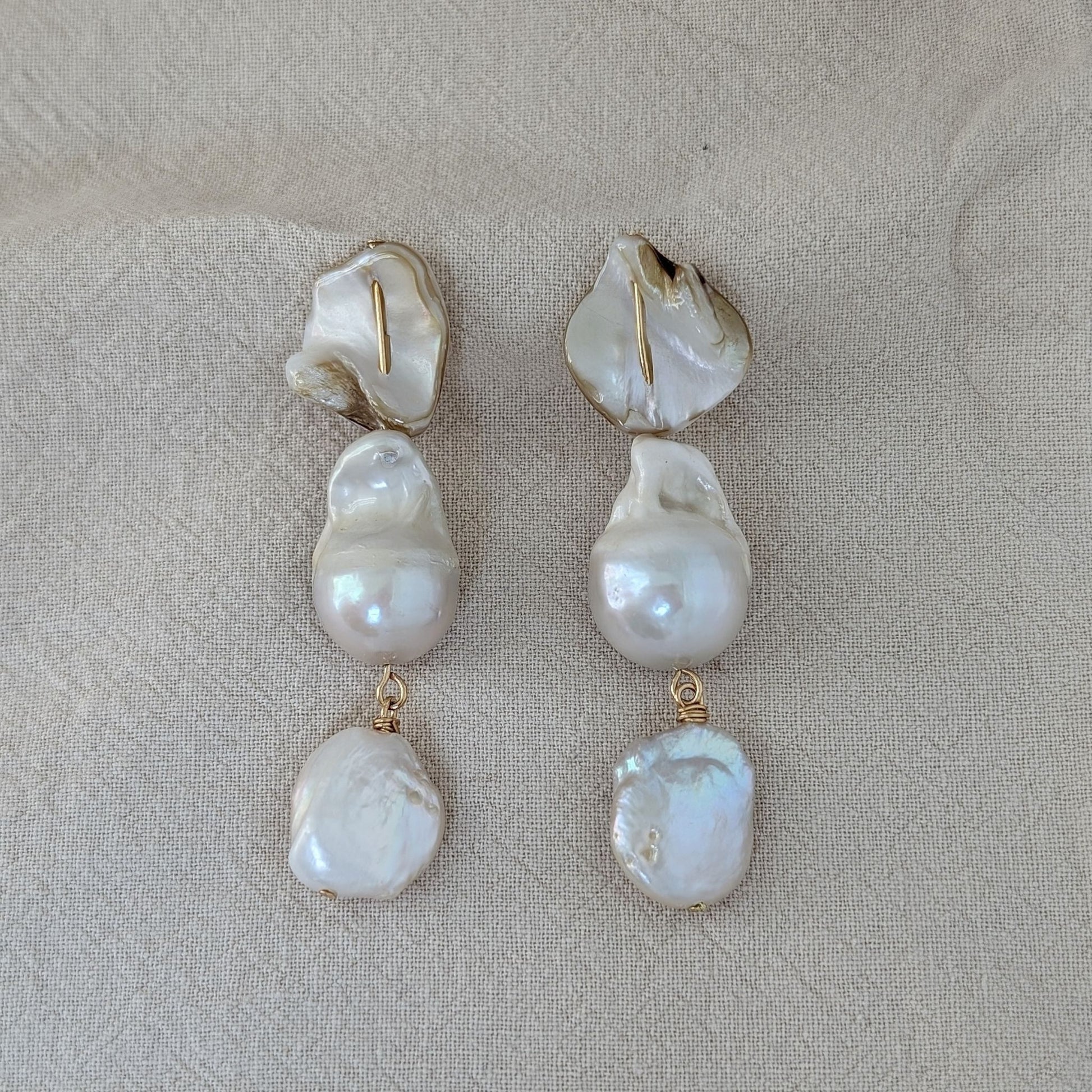Etta - This contemporary design is handmade with baroque fresh water pearls and shells. Featuring soft whites and creamy pearlescent hues.