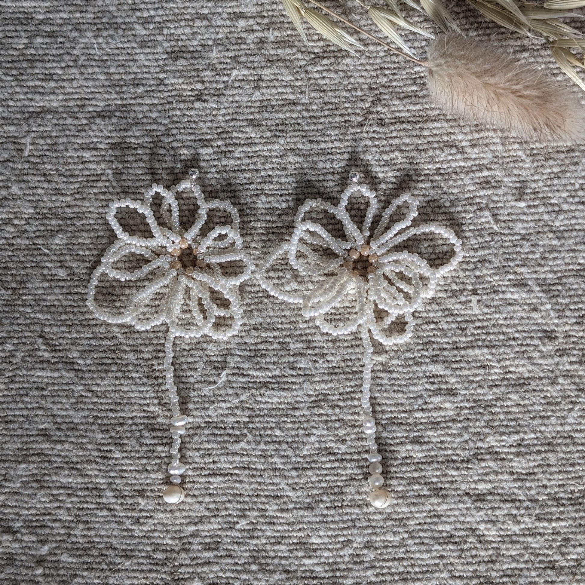 Floryn - Hand Beaded and Pearl Earrings (White)