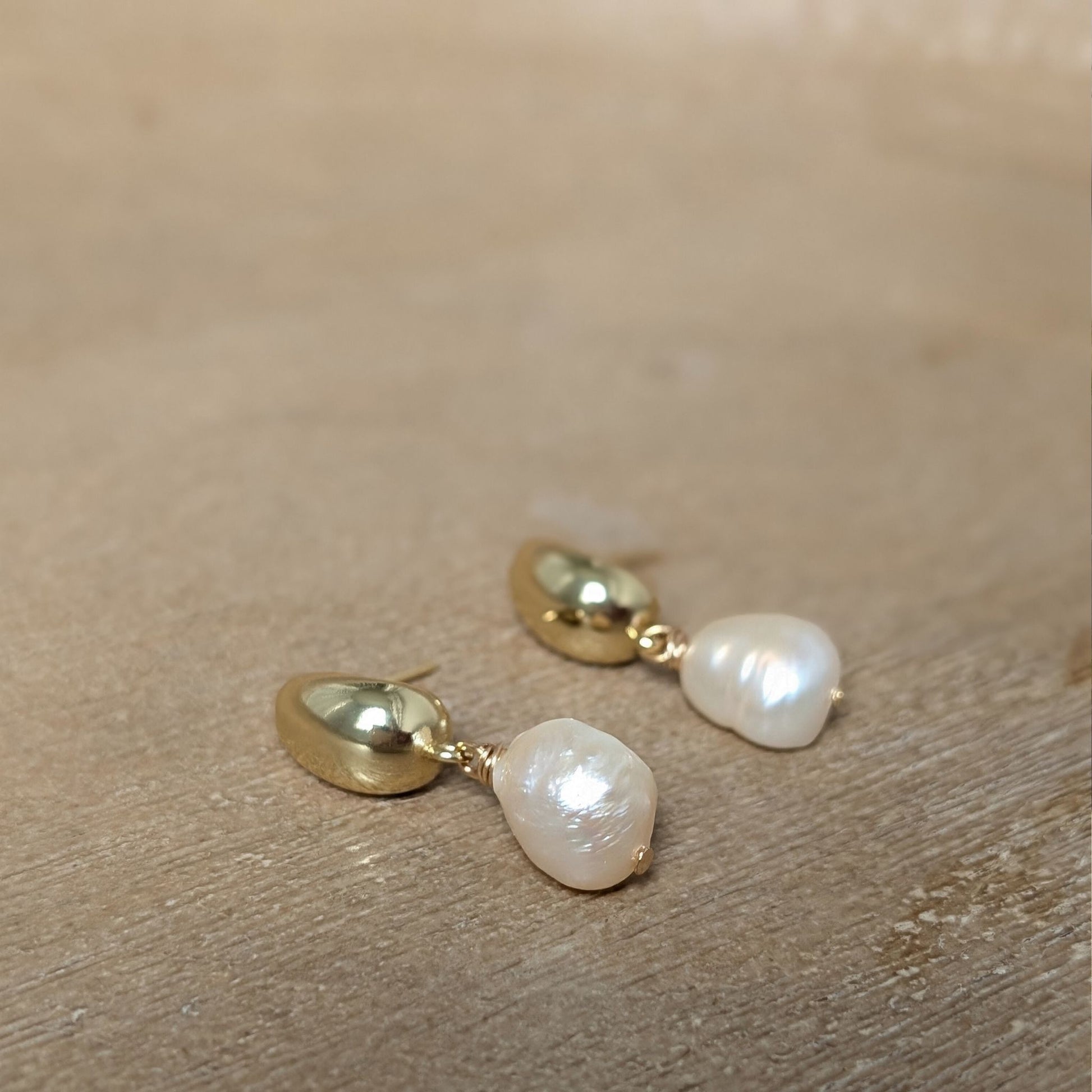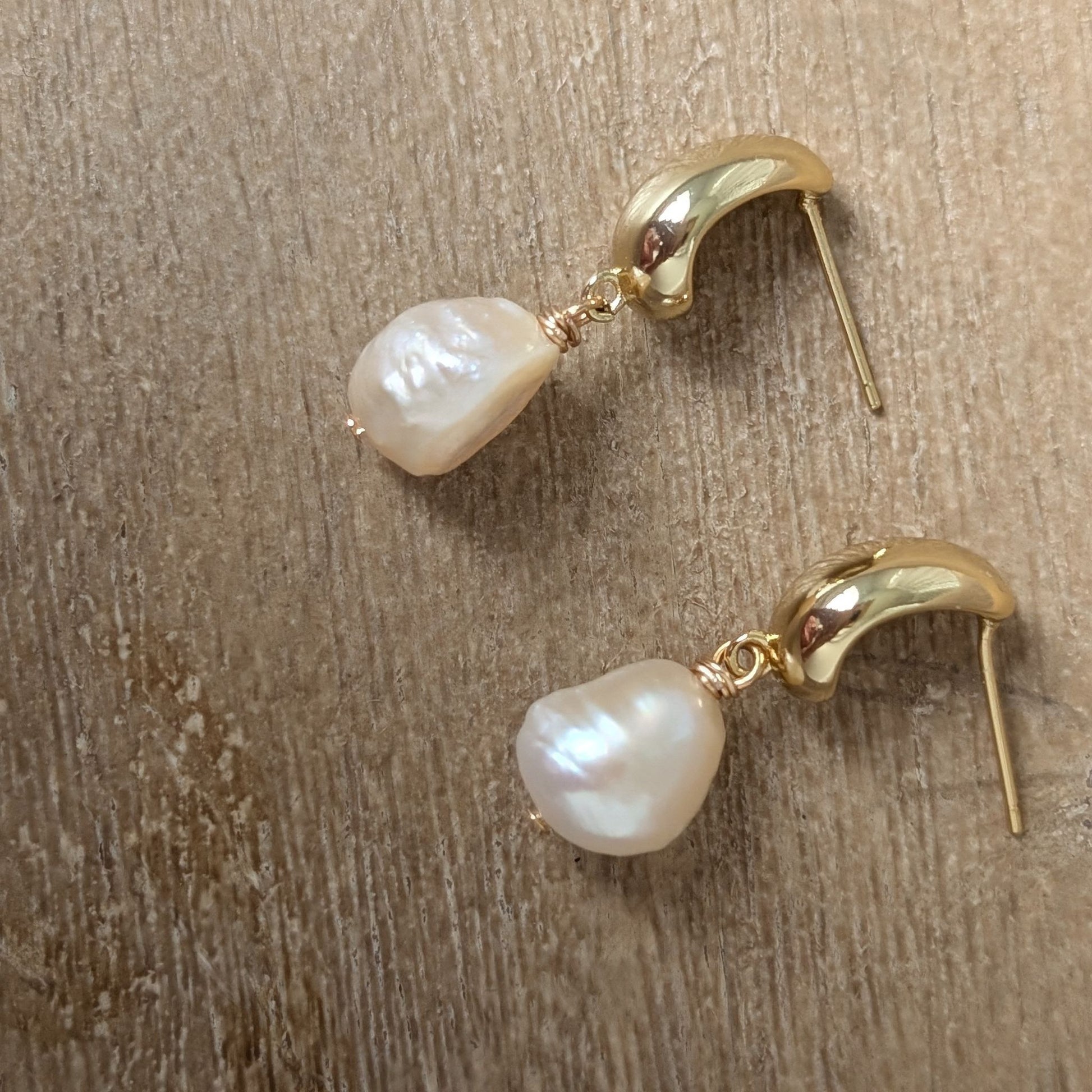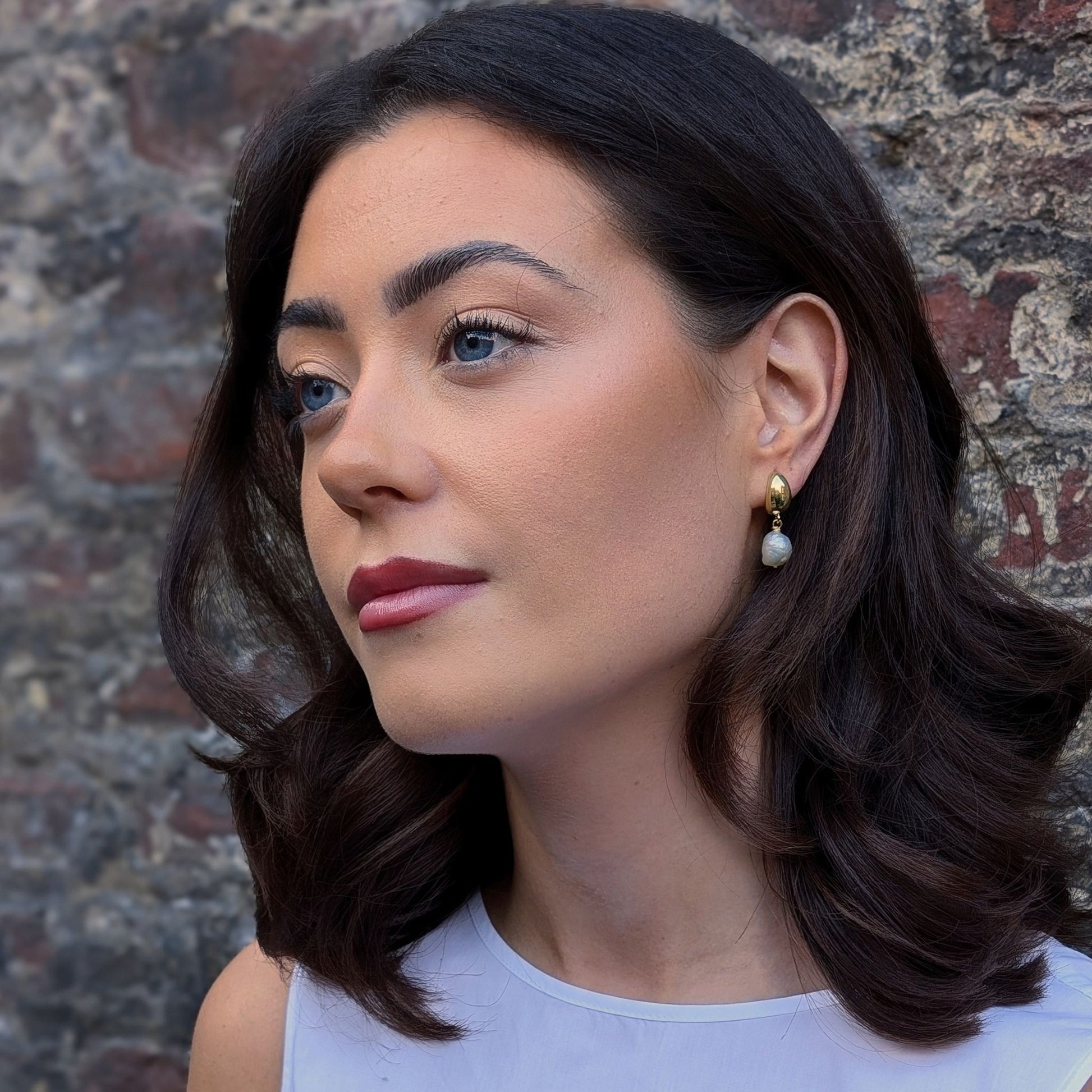 Elegant gold dome featuring a freshwater waterfall pearl.