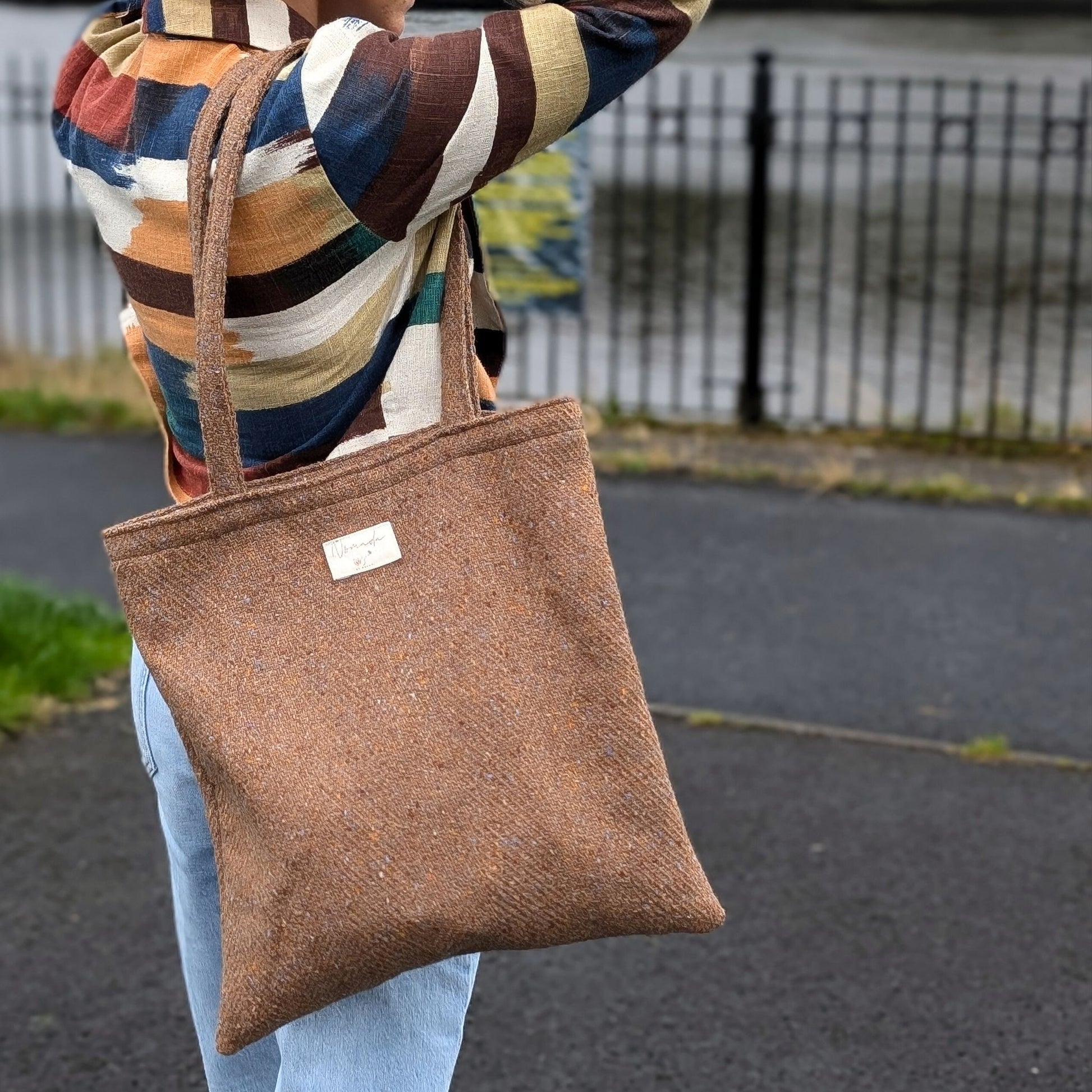 Each bag is meticulously crafted in small batches using limited edition Irish Tweed sourced from Donegal, Ireland. The vibrant flecks found throughout the Irish Tweed give this high-quality fabric a unique charm, making it ideal for carrying your daily essentials.