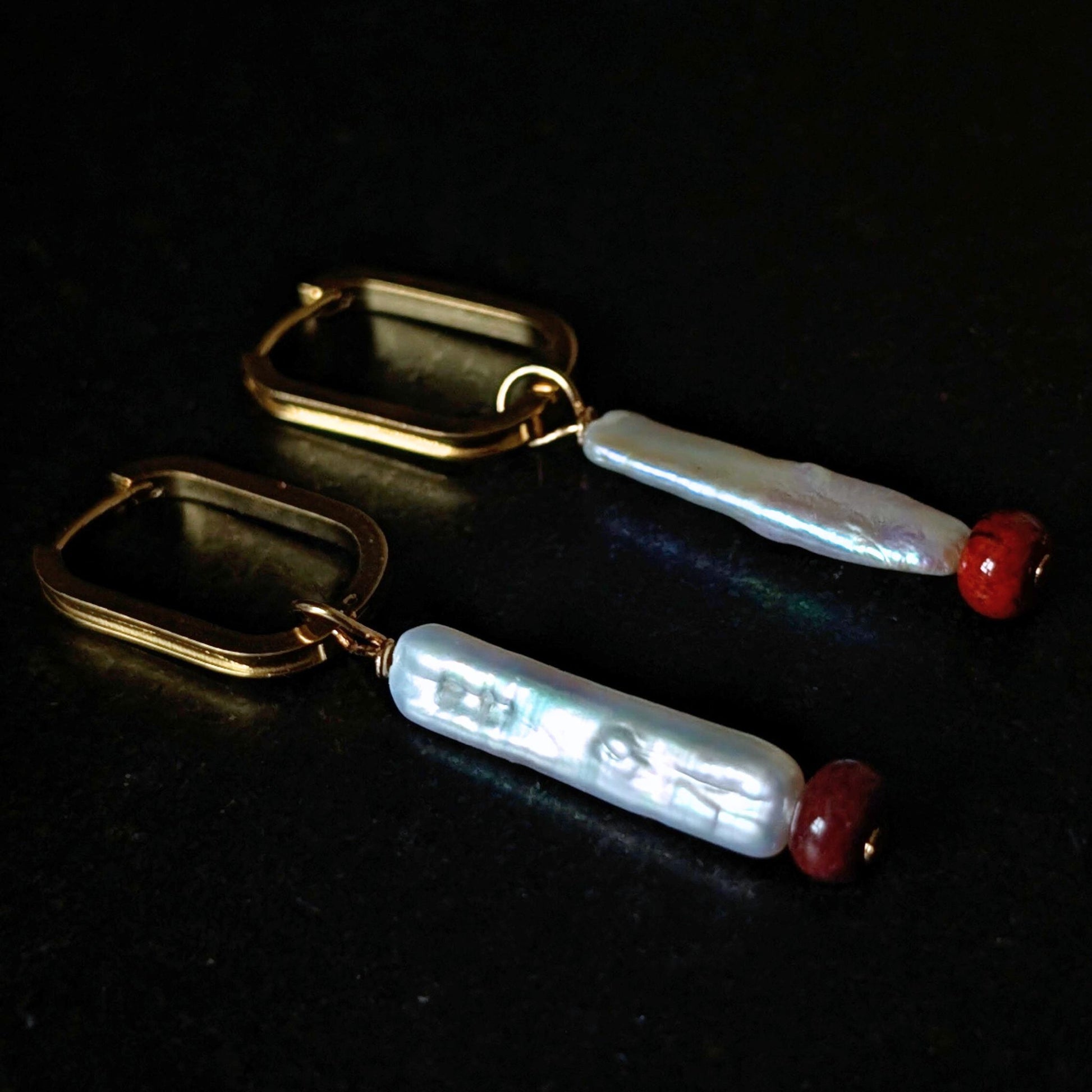 Handcrafted with elongated freshwater pearls and warm carnelian stones, creating a striking balance between fluid form and structured geometry.