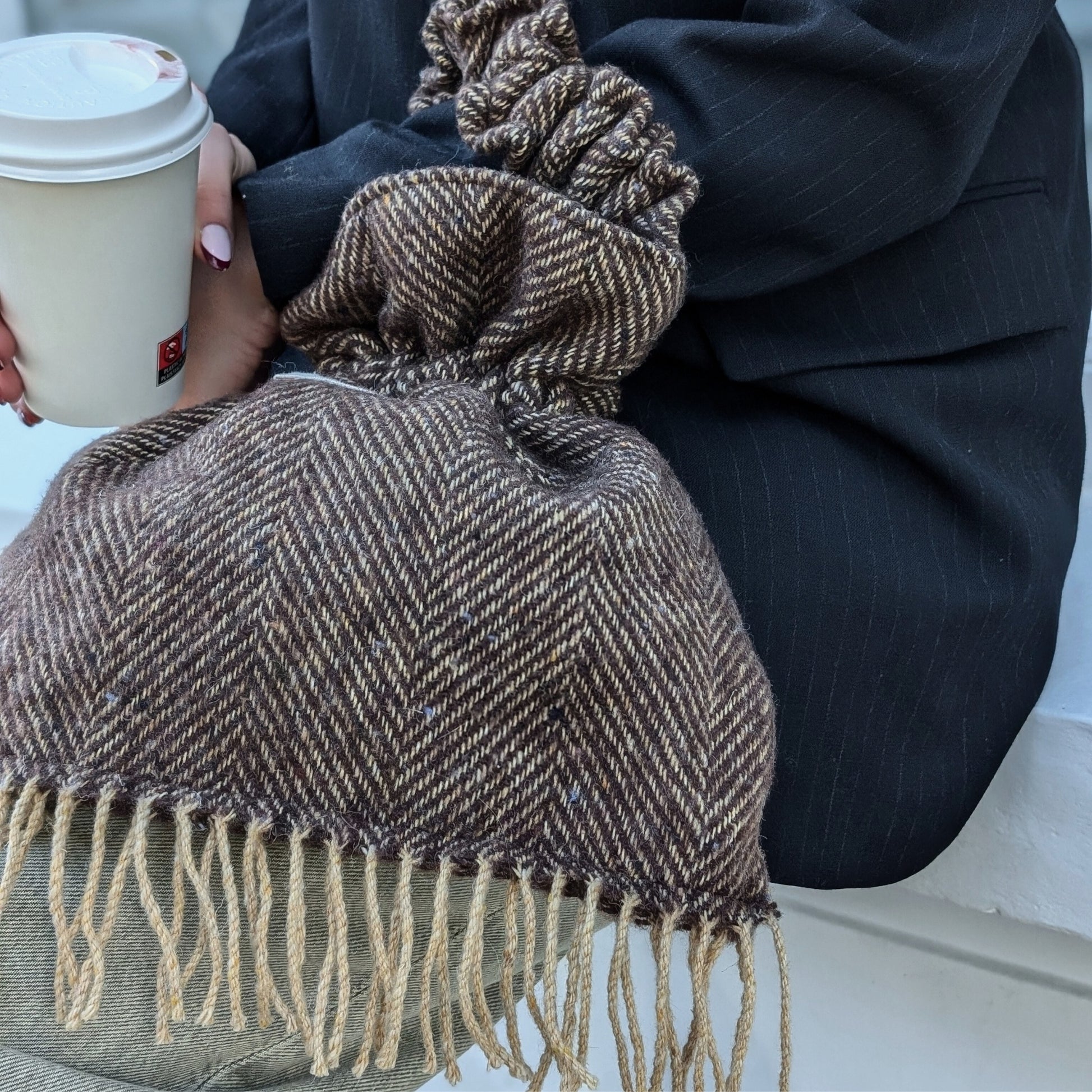 Lula Bucket Bag - Brown Herringbone Irish Tweed