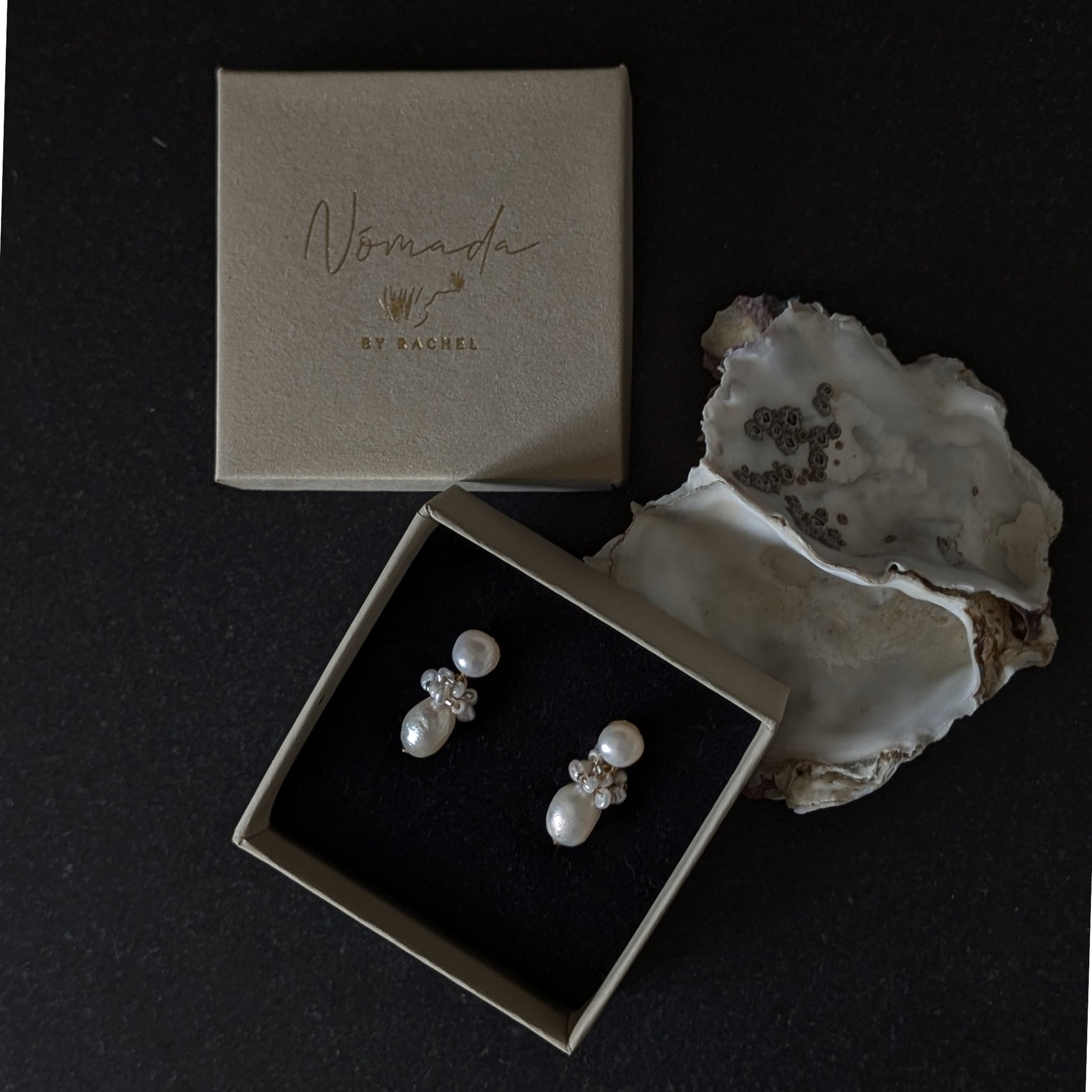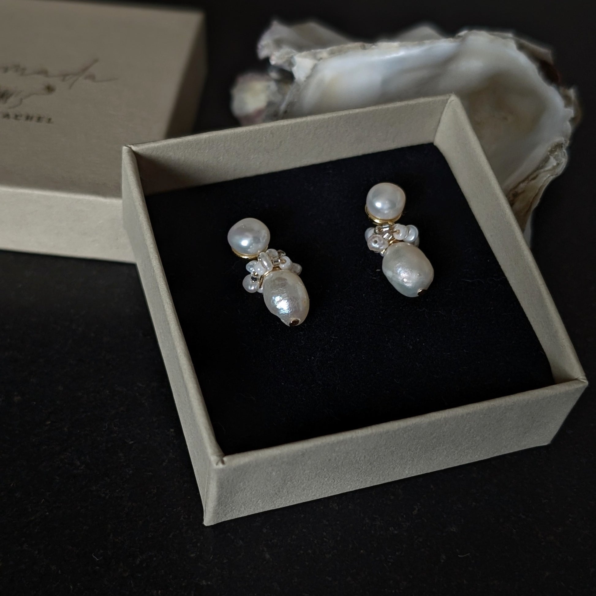 Elegant and timeless, these handcrafted pearl cluster drop earrings bring a touch of natural sophistication to any look. Featuring organic shapes and soft iridescence hues from the freshwater pearls complimented by dainty beading.