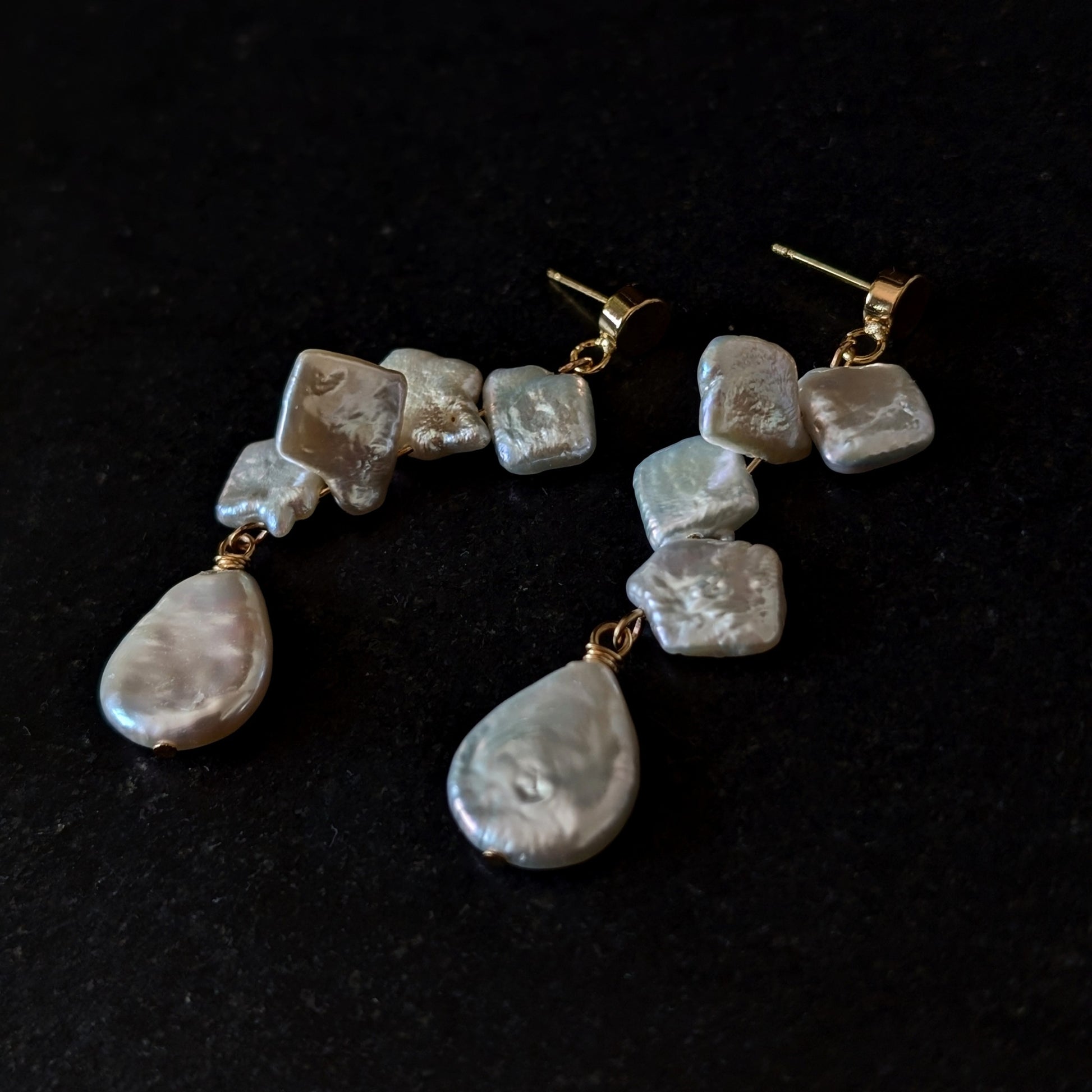 Uniquely shaped freshwater pearls create an eye-catching drop that embodies elegant movement and a modern touch.