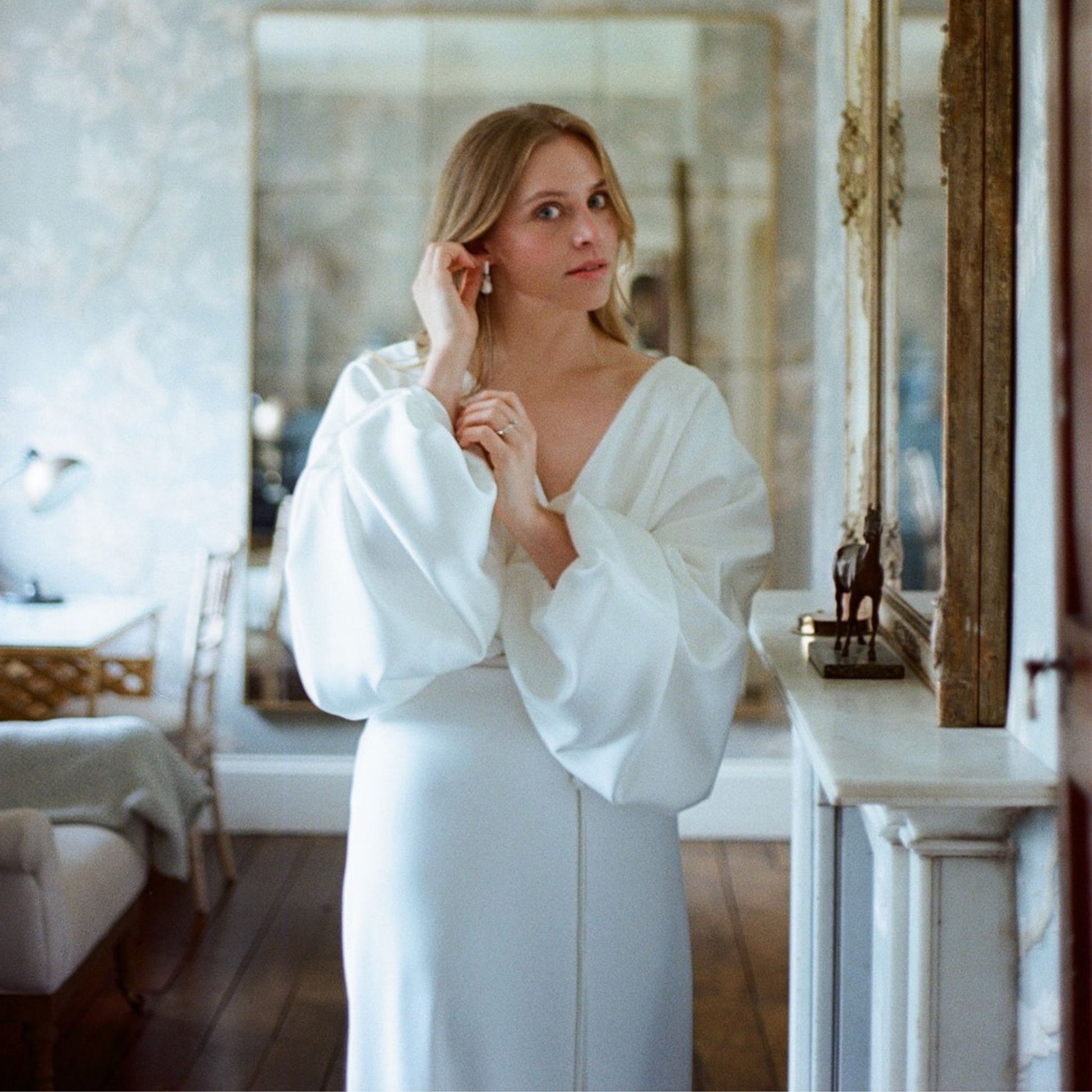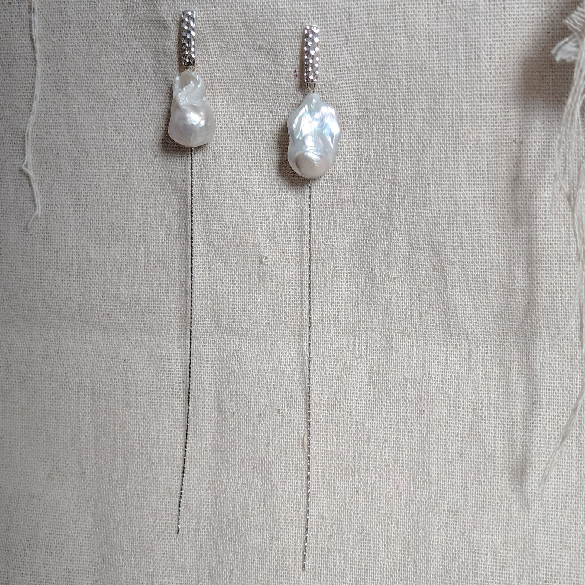 The Raela earrings are designed with a freshwater baroque pearl as the centerpiece, giving them a classic and timeless look, while the silver chain detail add a modern touch.
