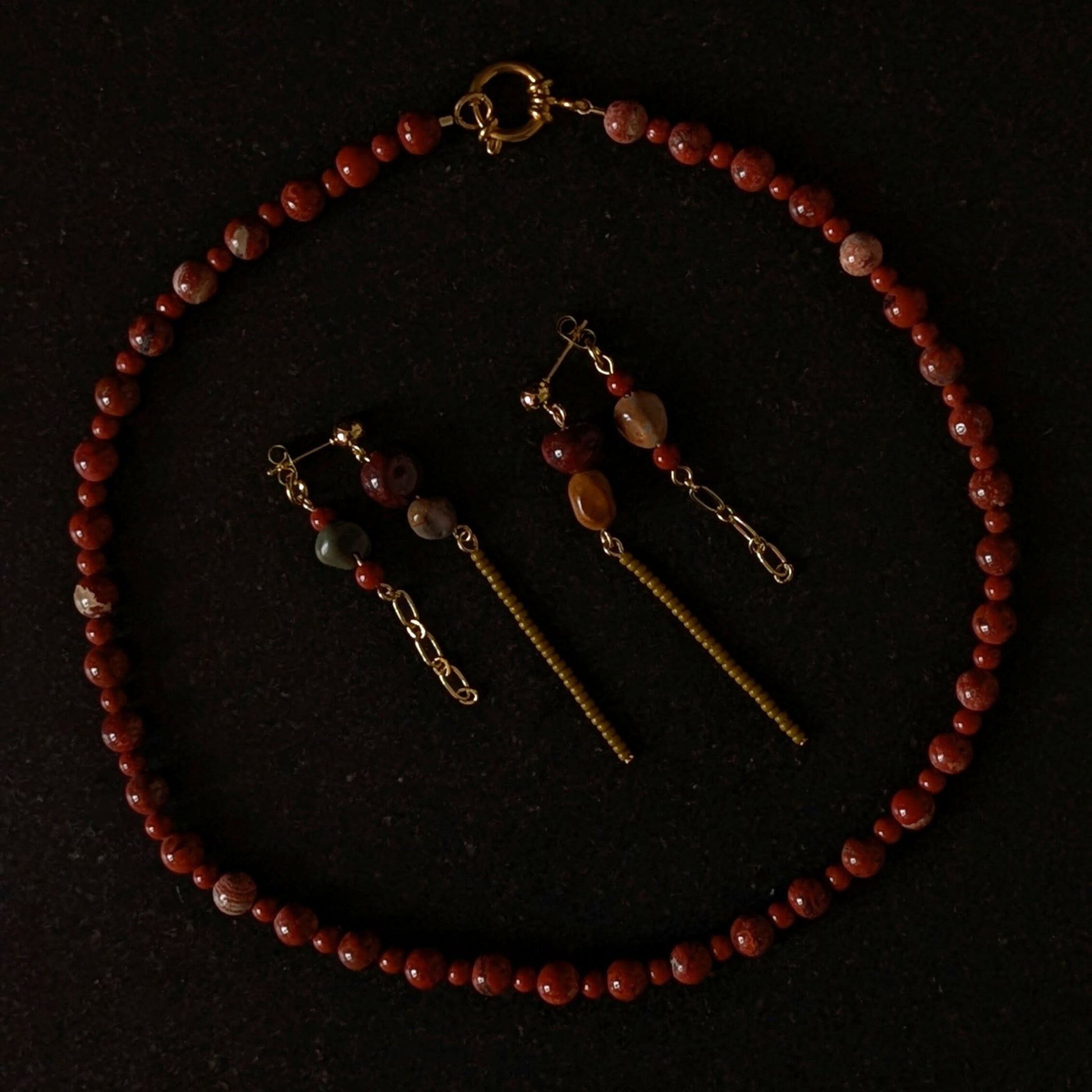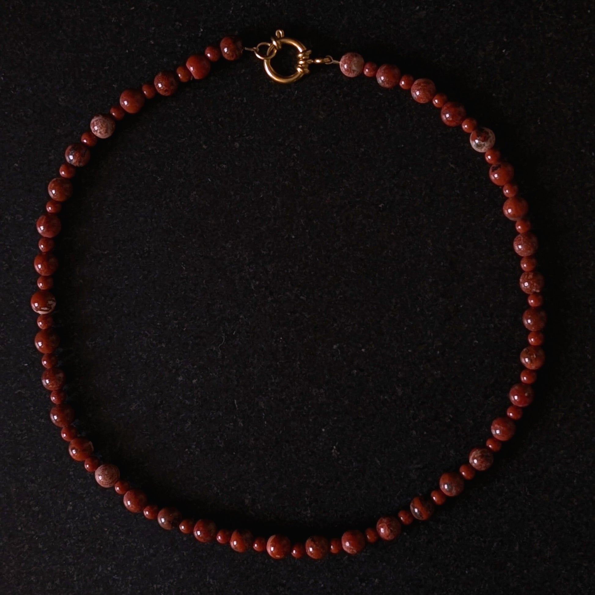 Simple, grounded, and effortlessly timeless — the Vale Necklace embodies the quiet beauty of natural materials and thoughtful craftsmanship. Each piece is handcrafted with smooth red jasper beads, known for their earthy warmth and subtle texture, finished with a polished gold-plated clasp for a refined touch.